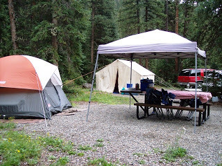 We like to camp at South Mineral Campgrounds in the San Juan National Forest. Surrounded by mountains and bordering a cold mountain stream, it's a gorgeous place to set up camp. At 9800 feet, it's plenty cold in the morning, a few of them recorded at 39 degrees--a huge change from the triple digit temperatures we were experiencing in Kansas.