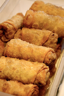 To prepare, add 1/3 heaping cup sausage filling to each egg roll wrap. Coat edges of wrap with water and roll from corner to corner. Repeat until filling is gone. To cook, you may either deep fry for a few minutes on each side, or bake in 400 degree oven, lightly coating each roll with a little oil. Bake for 20-30 minutes until golden brown. Serves 10-12.