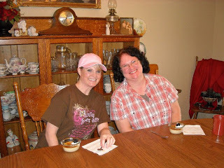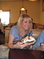A sweet picture of Kim with her chocolate-peanut butter pie. Thanks girls, for all your help with my stories and to Kim, for being such a lovely hostess!