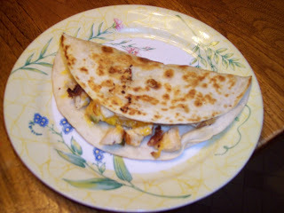 On lightly greased griddle, cook 2 tortillas at a time, placing 1 or more cups of chicken mixture on a half tortilla. Fold and turn on griddle until other side is golden brown. Serves 4-6.