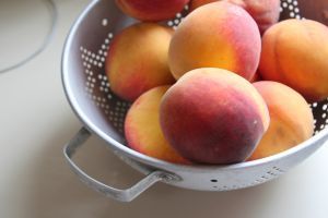 4 cups fresh peaches, peeled, cored and sliced1/2 cup brown sugar4 teaspoons cornstarch1/4 teaspoon nutmeg1/2 cup water1 tablespoon lemon juice1 tablespoon butter