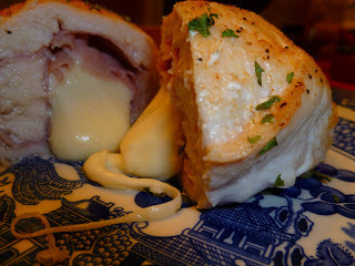 Flatten chicken to 1/4 inch thickness. Place slice of Mozzarella cheese and ham on each to within 1/4 inch of edges. Fold in half; secure with a toothpick. Brush with oil and sprinkle with Seasoned Salt. Bake at 350 degrees for 20-30 minutes or until juices run clear. Serve with rice and green vegetable. Makes 6 servings. Enjoy!