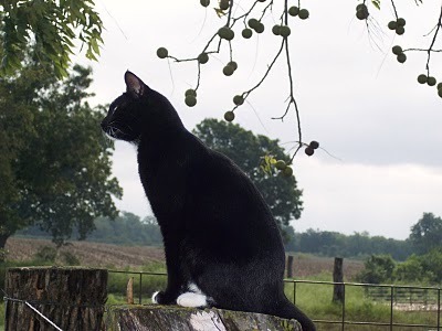 Cat on fencepost wondering about all the ruckus