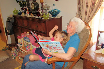Here with my mom, reading stories together.We had such fun reading new story books -- Little Ree, Blueberries for Sal, and The Maggie B, and of course, The Adventures of Peter Cottontail.