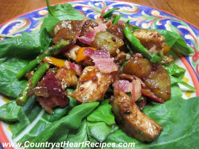 Warm Potato Salad with Chicken and Asparagus over Spinach