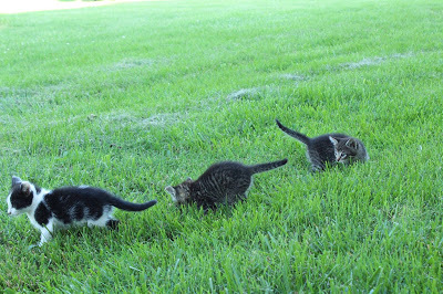 They were two small to let them stay outside at night, so we've been keeping them in the house at night. Oh my! They love to wrestle with each other, bounce, and run! Lots of fun to watch.