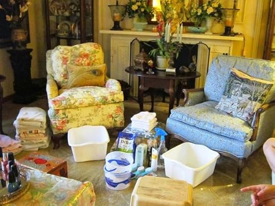 We planned for weeks, collecting items needed for facials, manicures, and pedicures. Then we recruited helpers (slaves for the day) --her oldest sister, grandma, and moi.
