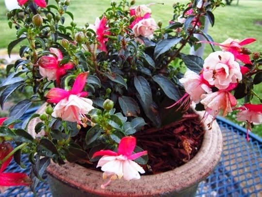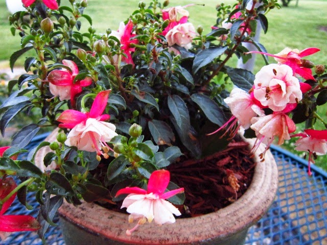 I've also included a photo of our new Fuschia plant we picked up at the store a few weeks ago. I thought the colors were so pretty, and the hummingbirds love it. What about you? Do you have special flowers you delight in during the spring and summer? Share with us here.