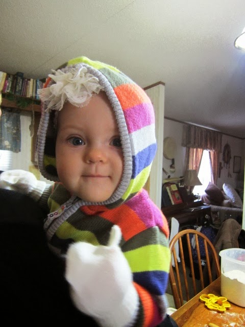 She loved her little doll that we gave her for Christmas. It's such fun to watch her carry it around and talk to it.  I'm trying to teach her mom how to give Emma a curly-top. Too sweet! And check out those baby blue eyes.