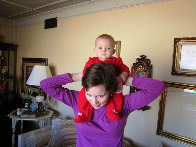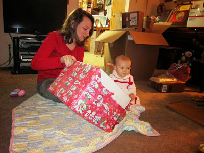 Though right now, she's perfectly content to play with the wrapping paper. She loved her little doll that we gave her for Christmas. It's such fun to watch her carry it around and talk to it.