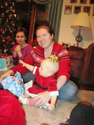 They gave her a cute little tea set and can hardly wait to have tea parties and watch Jane Austin movies with her.  Though right now, she's perfectly content to play with the wrapping paper.