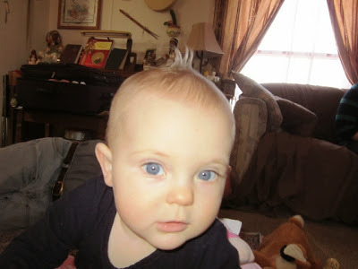 I'm trying to teach her mom how to give Emma a curly-top. Too sweet! And check out those baby blue eyes.
