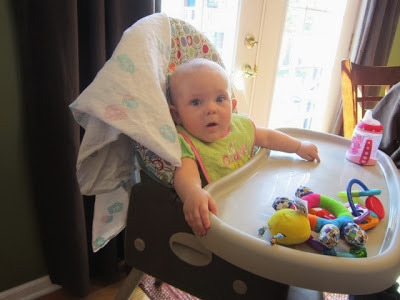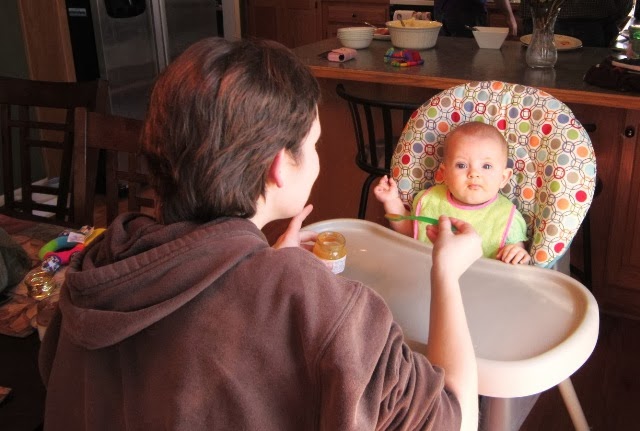 She now has three teeth, with three more trying to come through. She ate sweet potatoes and blueberries while we were there.