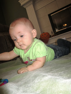 She's rolling all over the floor to get where she wants to go. Not yet crawling...