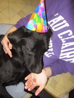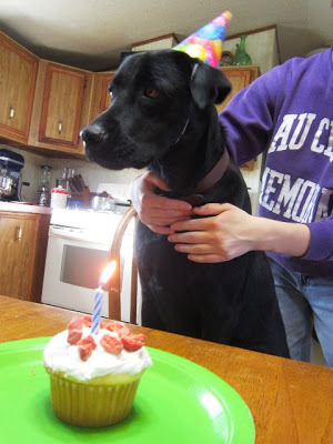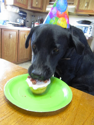 We even gave him a birthday party, complete with party hats, cake sprinkled with bacon treats, and a ham bone for a gift. What a lucky fellow.  Happy Birthday, Luther!
