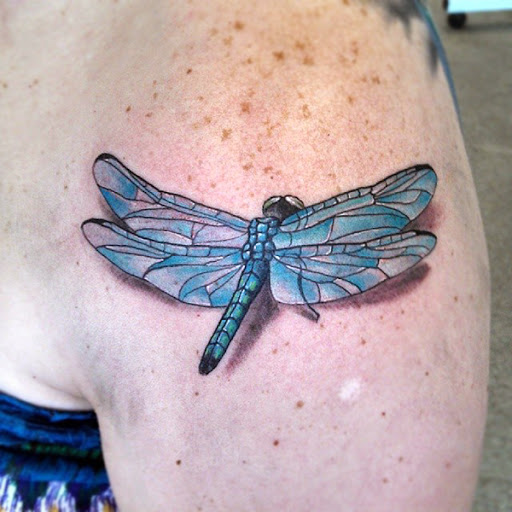 I recently saw an insect that had taken up residence on a woman's shoulder. The woman stood ahead of me in line for an ice cream and appeared to be in her fifties. I wanted to warn her before I whacked the thing. "I think there's a dragonfly on your shoulder," I said. "I'm going to get it off."