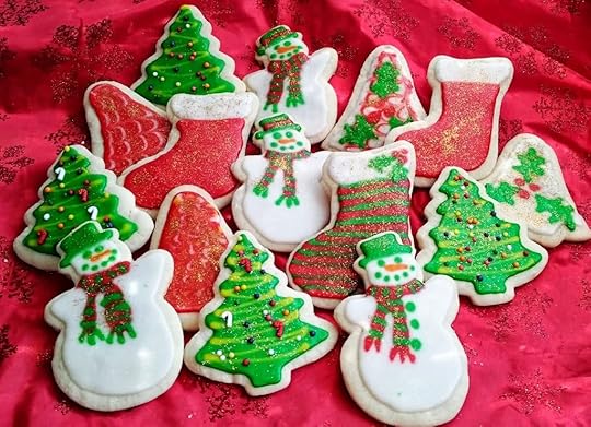 Granny had the buffet set up in the dining room, where smells mingled from baked ham, lasagna, sliced roast beef for sandwich-making, sweet potatoes, and Granny’s famous potato salad. My sister-in-law Joanne brought her blueberry and pecan pies and one of Charley’s sisters brought a cake. Sugar cookies decorated with red and green crystals waited for the kids.
