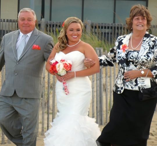 Nikki Falls accompanied by her dad and my sisterTogether with my sister's extended family, we celebrated her step-daughter's wedding in Rehoboth Beach, Delaware. We removed our shoes to walk to our seats in the sand, cooled from the wind and rain of the previous day. Sunlight bounced off the tips of waves, and a huge fish jumped out of the sea in front of us. The steel drummer announced the bride, accompanied by my sister and her husband. The junior high school cheerleader had blossomed into a responsible, loving woman, starting a new life full of hope and promise.On the almost-nine-hour drive home, Charley and I got off Route 95 in southern Connecticut at Exit 5/ Riverside/Old Greenwich. It's where I grew up, and we knew the McDonald's was right off the exit. In fact, it's where we took our two sons over the years we visited my parents.
