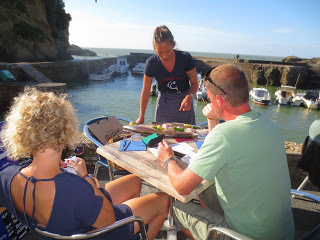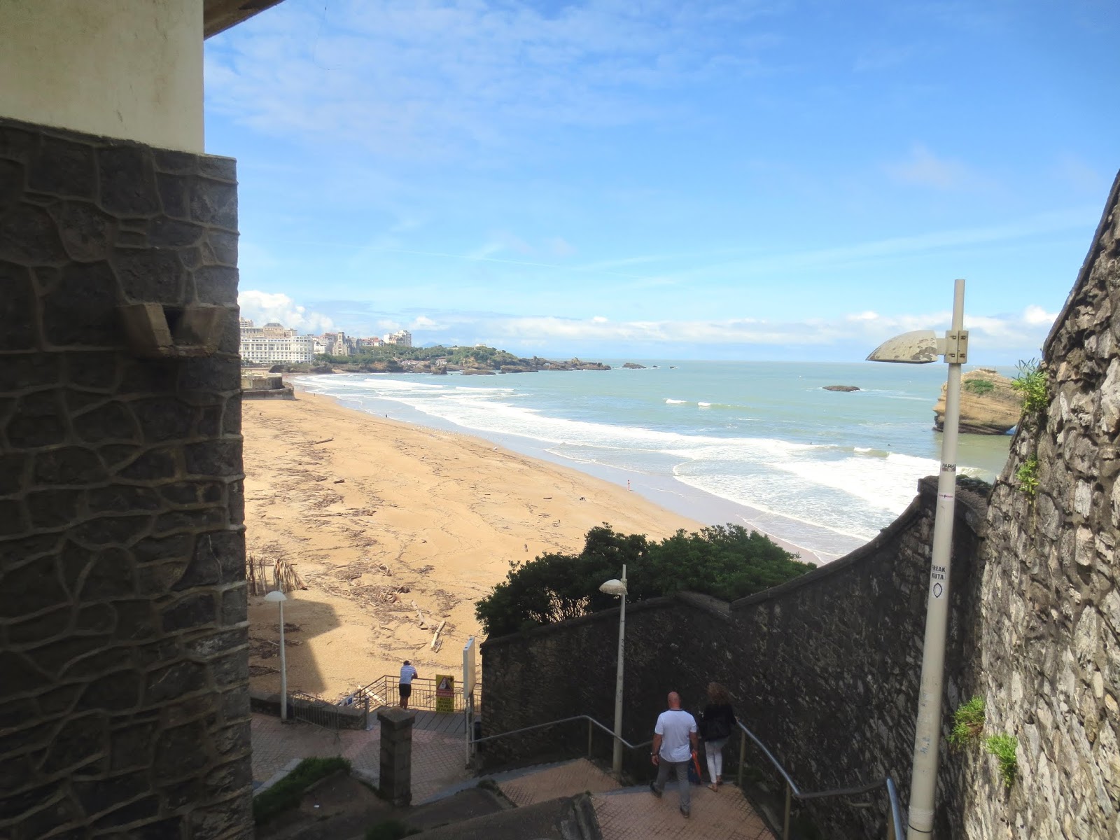 We were staying at Le Regina Hotel, Biarritz, France, on the Atlantic. Each day we walked down the hillside from our location near the lighthouse to the beach, which lay beneath tiers of stone steps. The sand was wide and the surf cold. Wetsuits on boards dotted the waves. Elderly couples, young lovers, and skateboarders shared the wide promenade. At the far end was the casino. Around the curve we sat for wine and seafood in a marina. Needless to say, we got grimy and our clothes were limp with weather that began in misty fog in the morning and rose to mid-eighties in the afternoon.