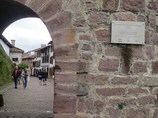 Above-the-ground cemetery with inscriptions in Basque, Ainhoa, Fr.St. Jean Pied de Port ("St. John at the Foot of the Pass") was a lovely stop for lunch along the River Nive. The town stands at the base of the Roncevaux Pass through the Pyrennes and is the pilgrims' starting point on the French side before the arduous mountain crossing during their Camino de Santiago pilgrimage.