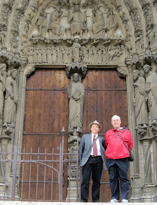 Christian Mayer with Charley at Chartres Cathedral, France, 2011 Christian's father's family was French; his mother's family was Austrian. We learned his family story during our rides through the mountains between France and Spain - one of the many personal souvenirs we've collected during our travels.