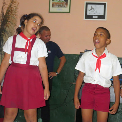 Singing of revolution for us in elementary school's principal's office, Havana, 2018