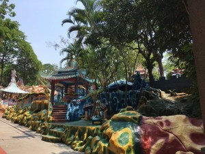 A vivid if weird attestation is Haw Par Villa, an eight-acre art-diorama park developed largely around the theme of hellfire and damnation, Asia style. Dating from 1937, courtesy of the brothers who invented Tiger Balm, the place is surreal in a specific way: It is a deliberately over-the-top extrapolation of the sacred statuary and related art styles one finds in Taoist/Buddhist temples and shrines. One Haw Par exhibit takes you through a tunnel displaying the ten courts of hell. In each court, a Mandarin matches sins to specific punishments, which are illustrated in roughly one-fifth scale miniature before you. It is the orderliness of the surreality that is striking.