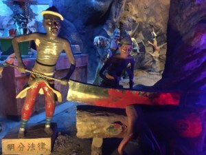 The hellish lore is a mash-up of Taoist, Hindu, and Buddhist legends, in keeping with the syncretism of typical Asian approaches to religion. Buddhism comes out of Hinduism and most Taoist temples here have Buddhist rooms or sections. Adepts mix and match deities and supplications as suits the moment. Confucianism functions as a trans-ritual ethical umbrella, for East Asian traditions do not join faith and philosophy, ritual and law, in the same ways that the Abrahamic faiths do.