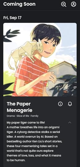 The Paper Menagerie WebtoonManta Comics is turning four of the stories in The Paper Menagerie and Other Stories into webtoons. I’ve long enjoyed reading webtoons, but this is my first time being adapted into the medium. It was really fun working with the artists and editors. I’m looking forward to my stories being presented to a new audience.
