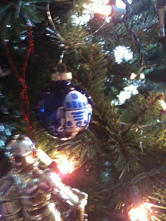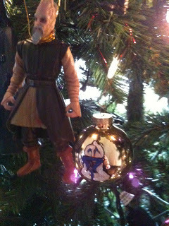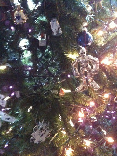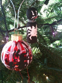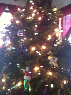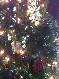 So now we have a half Superhero tree and a half Star Wars tree. My camera is lame, but here are a few shots (we filled in some gaps on the Star Wars side with action figures, but most everything else is handmade by either my nine year old son or myself).