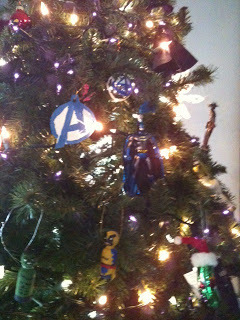 These beautiful decorations absolutely would not have fit well with our current assortment of decorations (or would have gotten lost among the rest, which would have been a shame). I'm a fan of doing "theme" trees, so I decided my son and I would make some superhero decorations and have a superhero tree this year.