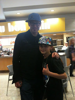 Then on the way home we had something really cool happen. We had a 3 hour layover in the Dallas airport. None of us were all that happy to be stuck there, but we chilled out in the little food fair in the airport terminal. My husband kept saying that a guy at the table behind us looked like Toby Mac - who is my son's favorite musician. It turned out it WAS Toby Mac, and not only that, but he came over and complimented my son on his shoes.