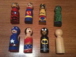 In case you can't recognize any (and I don't blame you if you can't!) from top left: Ironman, Superman, Wolverine, Hulk, Captain America, Wonder Woman, and Batman.