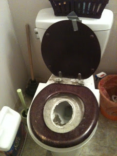 Yes, we're attempting to toilet train our little kitty, Indy. This is the state our toilet is in today, the first day, so I admit, I'm kinda glad to be gone for the next few messy days. To my husband, I say, "LOLOLOLOL!" (Thankfully he does not read my blog.)