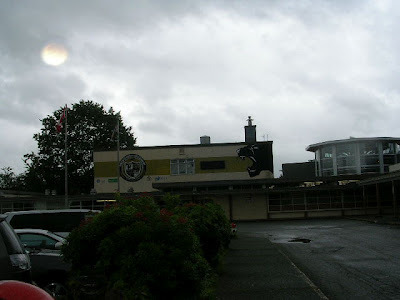This is the view from the main entrance. There's a panther's head painted on the building because that was our team name.