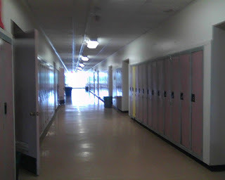 The lockers were not this ugly pink when I attended. I think--in my long-term memory--they were bright yellow (much better, right?)