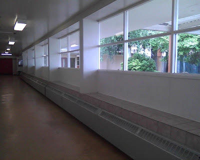This was my favorite location. The windows overlook the front parking lot, and there were almost always students hanging out on these sills (I'm not sure how my friend snapped a picture without any!)