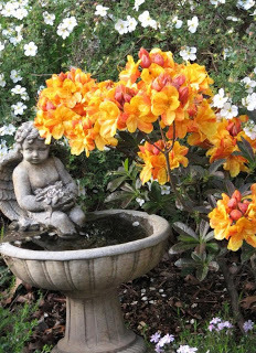 Angel Birdbath: backyard photo by LK Madigan Don't you just love how friends join hands in troubled times...how, even when our own lives are touched by shadows, we find Light when we're together?