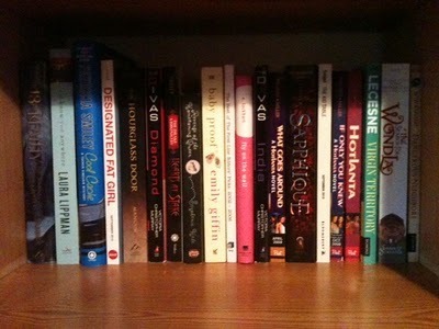 So my aim is to work at this slowly over the next few months. I'll post an image of my latest books available for giving away each week. All you have to do is comment on which one you'd most like to win and I'll pick at least one winner and add at least one new book to the shelf each week. Feel free to spread the word via Twitter, etc, for extra entries. (Fine Print: Some books may be advance copies. Some may be signed by the author. Most are in great condition, but the odd one may be a bit worn. I can only mail to U.S. addresses for this contests, otherwise it costs me too much to clear my shelves!)