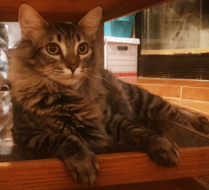 Zephyr being petted by my husband, Mike. Zephyr likes to grab petting hands so you can’t stop petting.