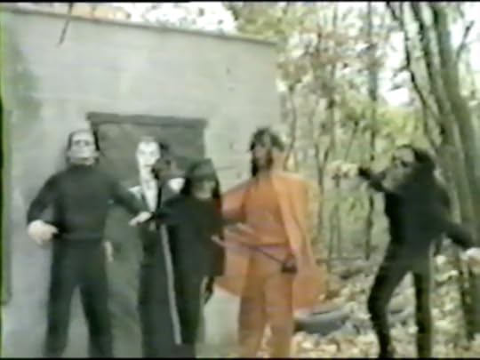 Frank of Ghoulish Terrors Magazine sent this to me with a description saying they "actually found this footage on a VHS tape retrieved/bought at an estate sale, years ago." This sounded like the setup for a fun modern throwback, but the moment I hit play, its authenticity cried out. A mysterious found videocassette is already the stuff of legends, but in this case, the contents are even more impressive. It’s essentially a short film about a quartet of monsters in search of a victim. They only pause along the way for the sake of growling, infighting, feasting, spell-casting and the destruction of small objects.
