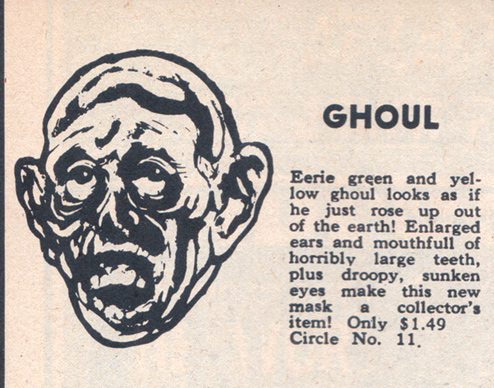 The enjoyable image seen above is the entire marketing campaign for a sound effects record called The Haunting, a mail-order exclusive released in 1971 by an enigmatic company called The Gayle House. The outreaching specter in the ad is a child-devouring Blood Banshee, the record's antagonist and a rare example of a creature-ghost hybrid. I'm delighted to learn (via Scarstuff) that recently the fabled spook has been adapted into a highly accurate latex mask by independent mask maker, The Devil's Workshop...