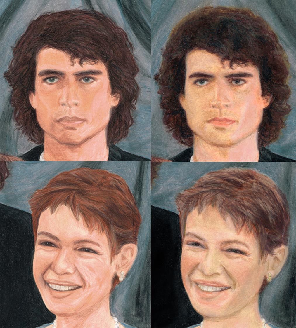 Title: The MayweathersDim: 3.5"x4.5" (each)This treatment seemed appropriate because I don't imagine this father and son spending much time together. The way I see it, William (the dad) sent the family photographer to Nathanial's school and put the result in the fanciest frame possible.