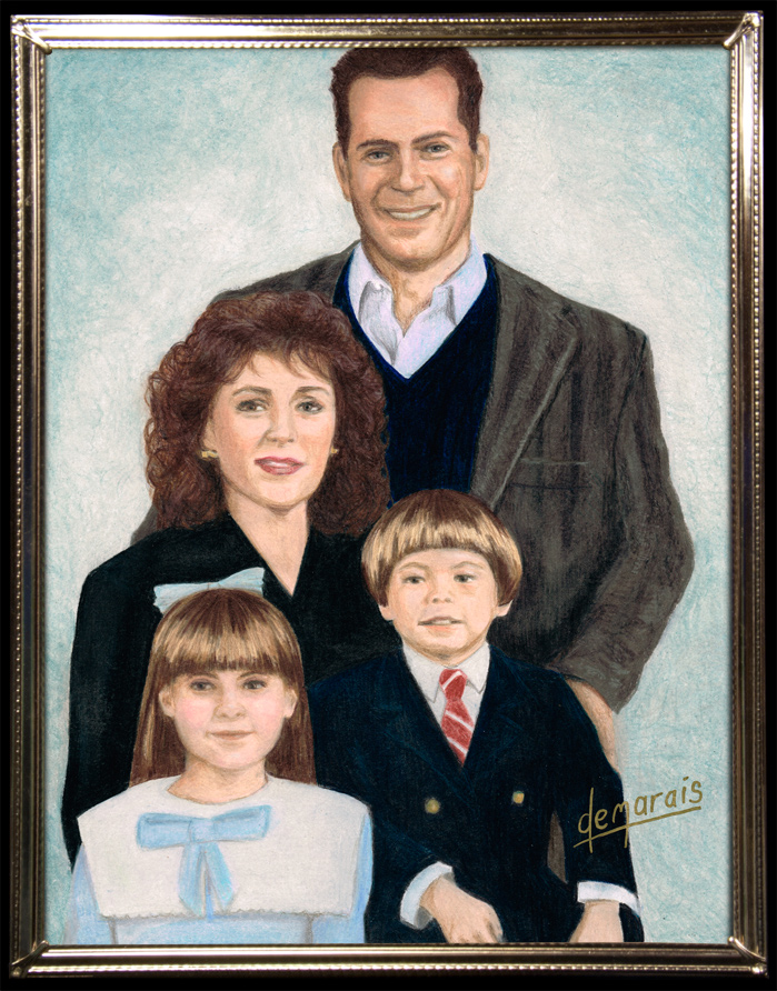Title: The McClanesDim: 11"x14"This is the only time I've done my own interpretation of an "existing" portrait from a film. It seemed like the thing to do since the photo is a key plot point, and since Die Hard is one of the greatest things my eyes have witnessed.
