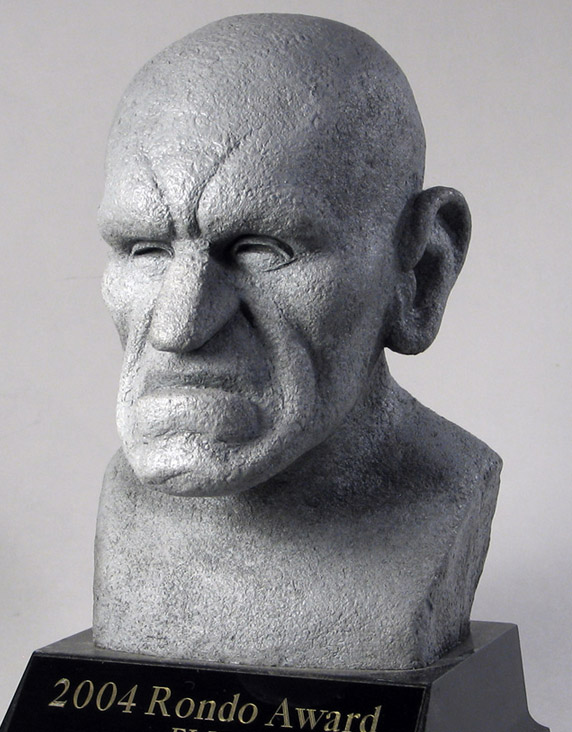 To those unfamiliar I quote their site: "The Rondo Hatton Classic Horror Awards were created by David Colton and Kerry Gammill at the Classic Horror Film Boards in 2002. The awards are fan-based, and have no connection to any commercial sponsor. Anyone in fandom can vote or propose nominees. The 'Rondo' award itself, features a bust sculpted by illustrator Kerry Gammill, and cast by modeler Tim Lindsey. The statuette is a miniature version of the bust of Hatton seen in the Universal film, HOUSE OF HORRORS (1946). The Rondos have been praised by recipients for their quiet beauty and evocation of classic horror.