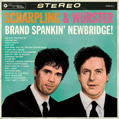I thought the duo was a perfect fit for a 1960s-era LP cover in the tradition of Bob Newhart, Paul Lynde or Rowan & Martin because their lives revolve around music and to me their comedy has a classic, timeless quality. Over the years they've built a self-contained mythology of characters, events, and places (i.e. Newbridge). Unlike typical radio teams they rarely depend on the latest happenings of pop culture, on the contrary they often employ hilariously obscure cultural relics and people in their vernacular.