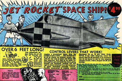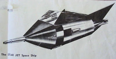 Image via Neatocoolville.comRecently, a 1964 Jet Rocket Space Ship by Honor House was offered on ebay for $1500. Like its tank and submarine counterparts, the rocket is made up of cardboard pieces. This is the first time I've seen this particular "checker board" design in real life and it's also the first time I've seen one of these in unused and unassembled. The auction has ended, but I grabbed the photos for posterity.