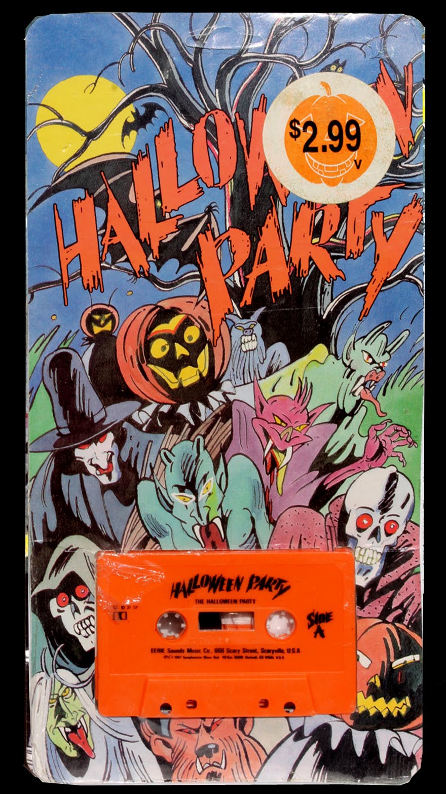 The best thing about this misnamed record is the packaging art (see below). It served as an effective billboard that could compete with the best CD longboxes. I'm sure it would have charmed me out of my $2.99, though sadly, it was destined for the trash since they skimped on a cassette case. Halloween Party:The Halloween Party was released with a sister album called A Night in a Graveyard/A Night in a Haunted House. I'll bet it sounds more like a night at the zoo.
