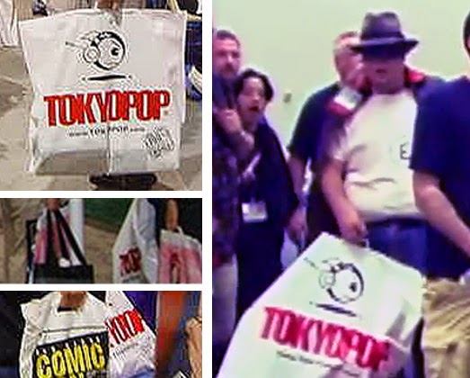 I burst through the waiting room door and out to the balcony. The whole place was deserted, but also absent was the painting. My next move was to scan the nearest portion of the massive vendor floor, but there was a problem. The painting was in a large Tokyopop bag that I'd received as a freebie promotional item. Literally thousands of these bags had been handed out since the first night of the convention.