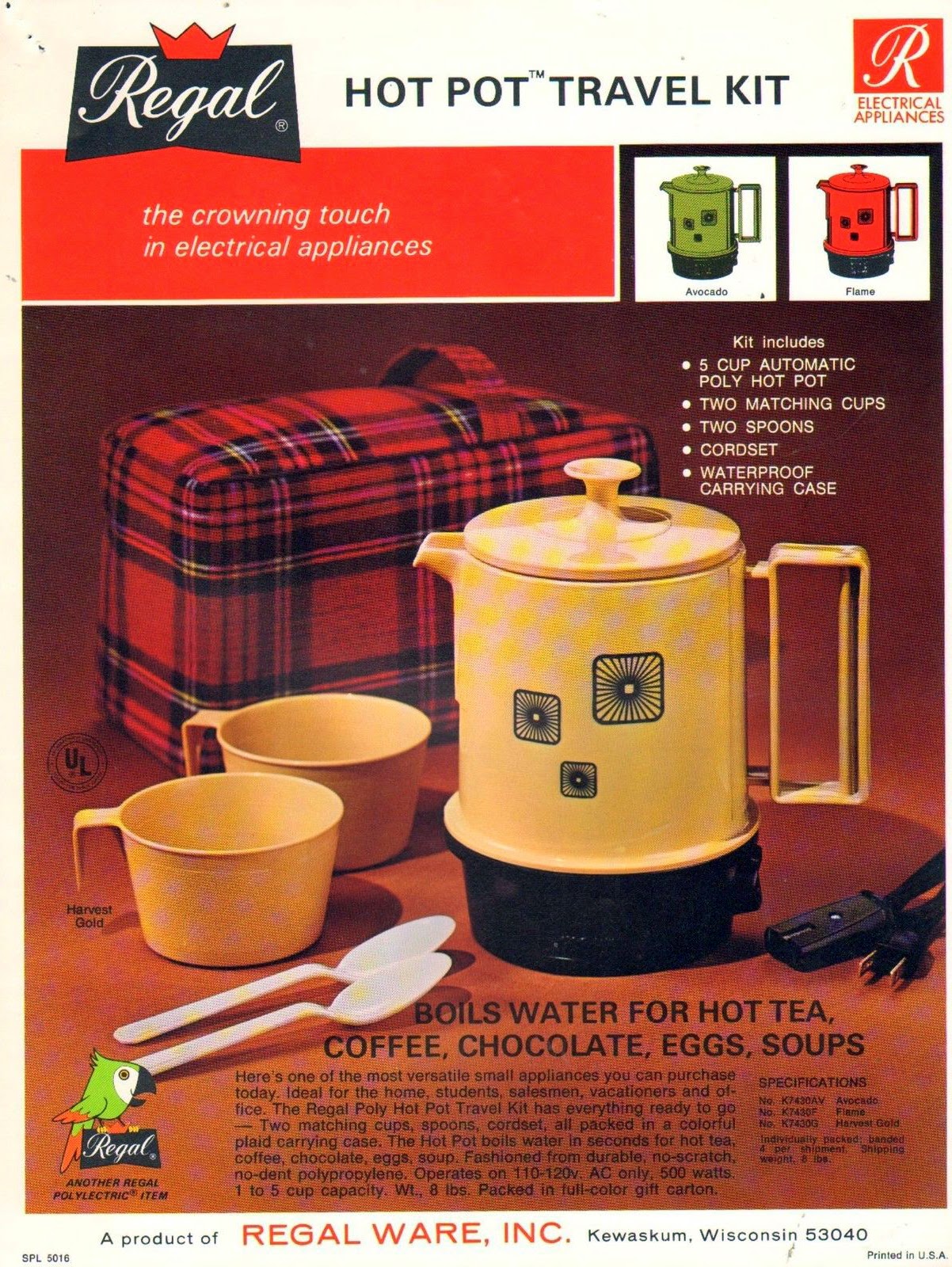 Ah, the Howard Johnson color scheme is always welcome. I also love how they made the asterisk on "Coffee pot and casserole not included" into a cool mid-century style starburst.